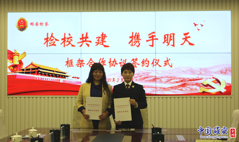 中国雄安官网3月27日电 为全面开展未成年人法治教育工作,积极推进未成年人检察工作社会化支持体系建设,3月25日上午,河北省人民检察院雄安新区分院与华北电力大学举行了以“检校共建 携手明天”为主题的框架合作协议签约仪式。河北省人民检察院雄安新区分院党组成员、副检察长杨静,华北电力大学法政系主任梁平代表双方共同签署了《框架合作协议》,并为“华北电力大学法学教学实践基地”揭牌。