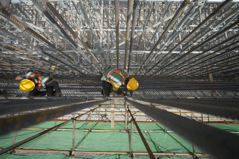 3月30日,中铁十一局的工人在河北雄安新区容东片区建设调蓄池。新华社记者邢广利 摄