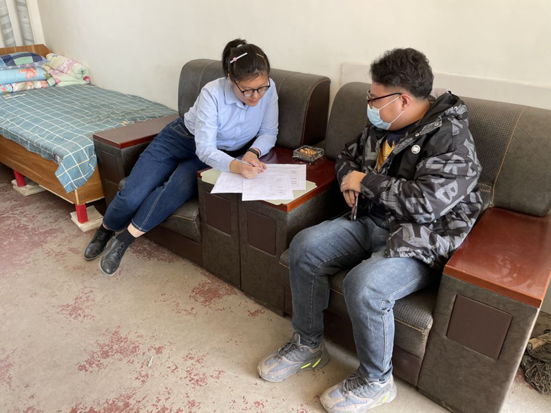 ↑宋瑞雪(左)和同事进行新建镇行政综合服务中心装修方案的商讨。(采访单位供图)
