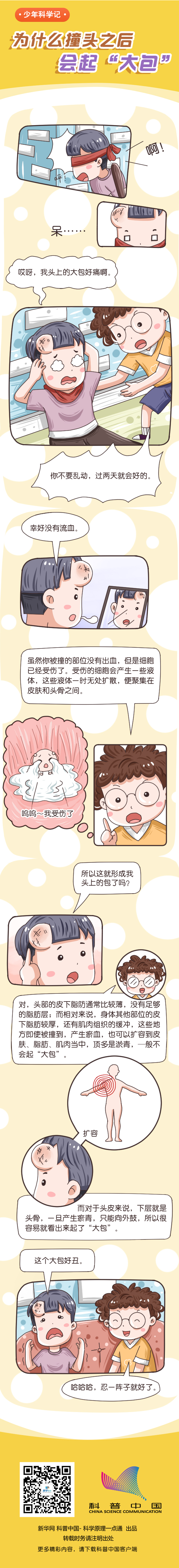 虽然被撞的部位没有出血,但是细胞已经受伤了。受伤的细胞会产生一些液体,这些液体一时无处扩散,便聚集在皮肤和头骨之间。