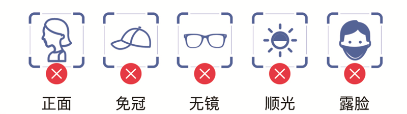 (三)如何提高识别率,正对镜头摘帽和眼镜,避免逆光,确保全部脸部处于视频采集区域。