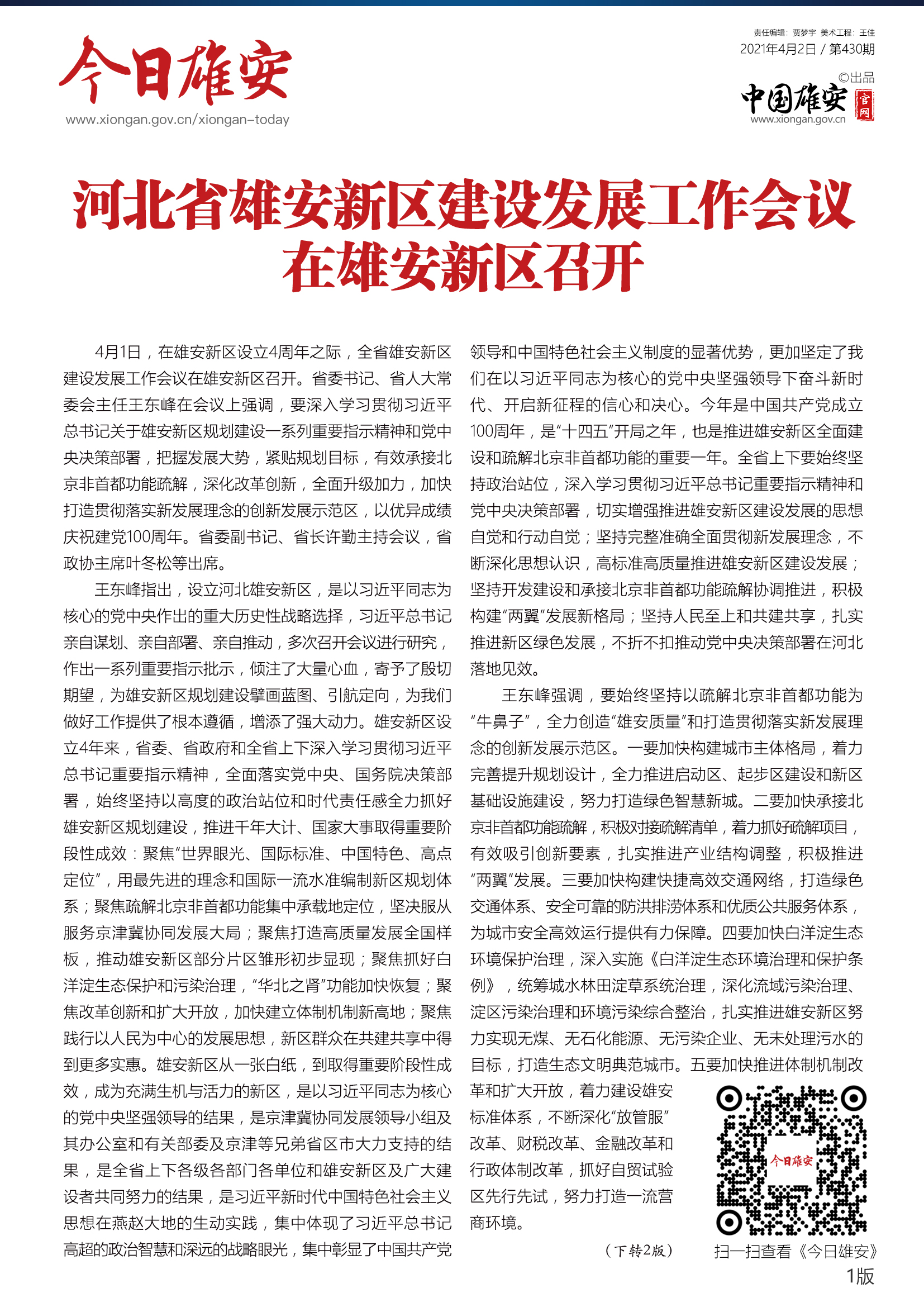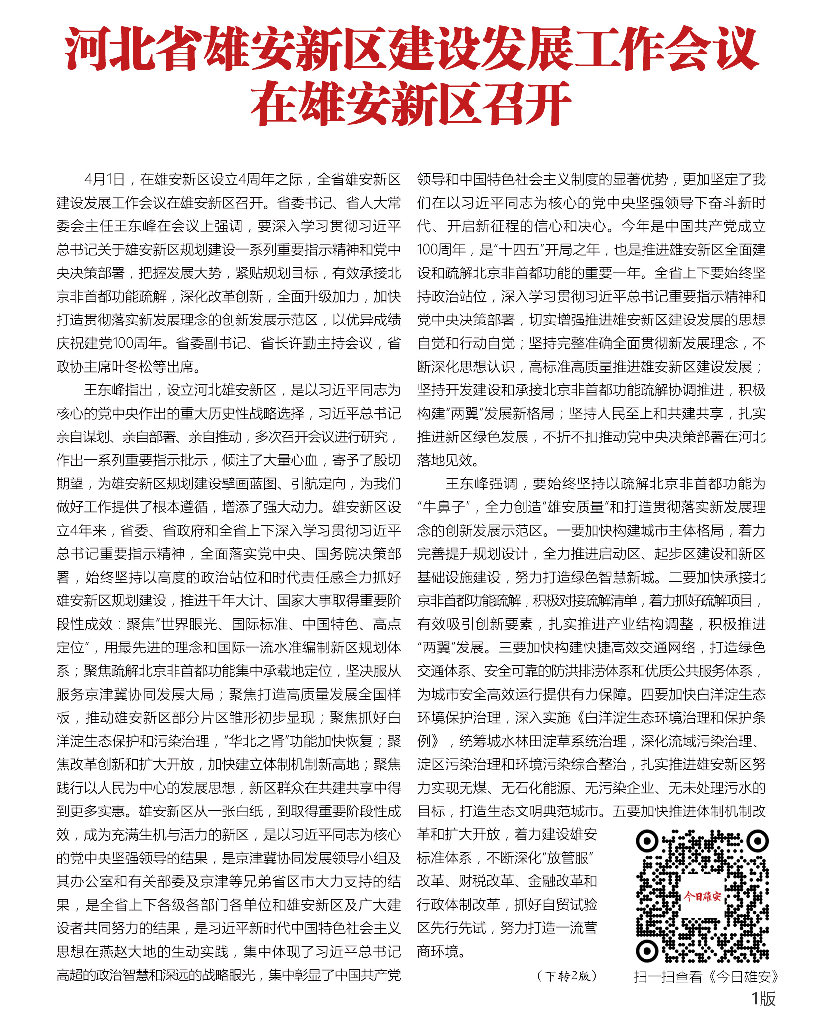 河北省雄安新区建设发展工作会议在雄安新区召开
