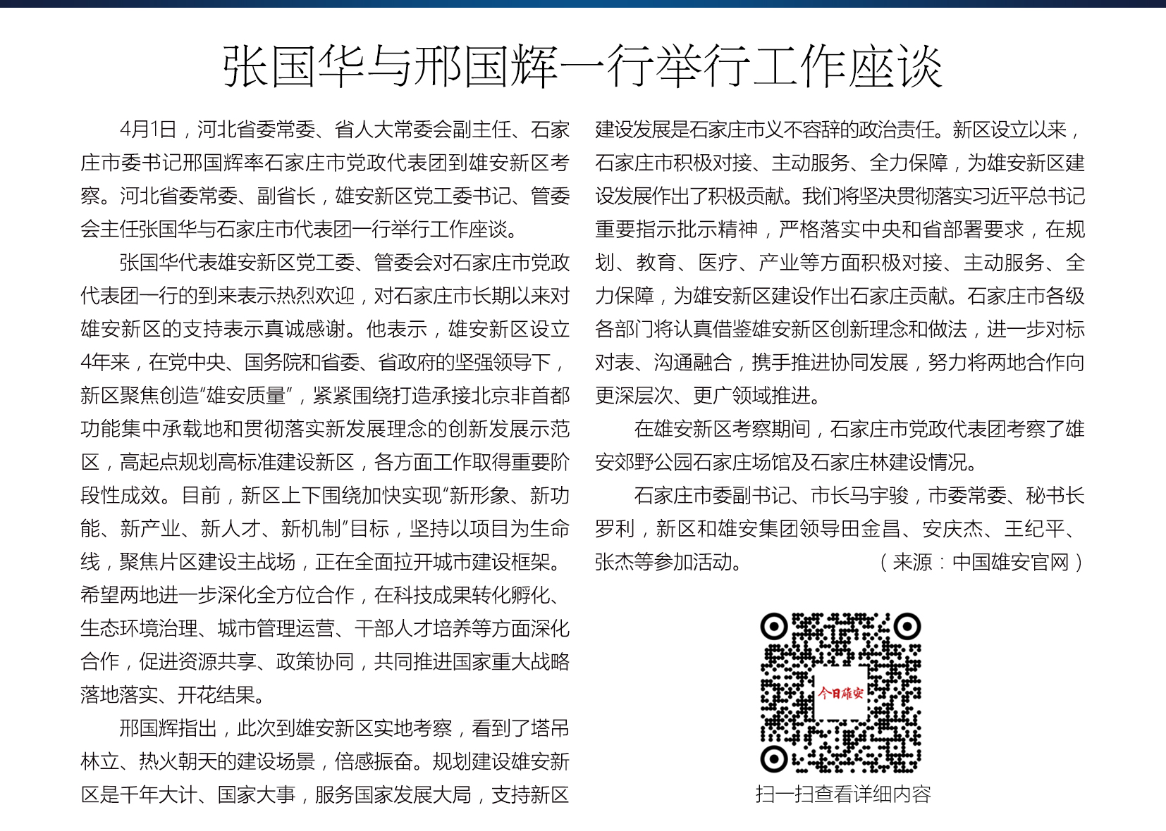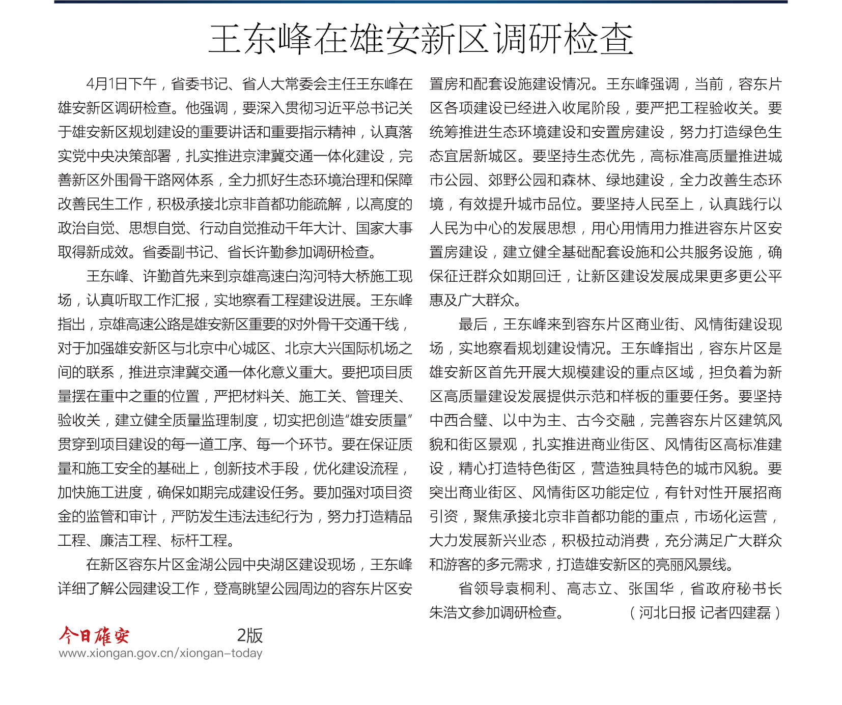 举全省之力持续推进雄安新区高标准建设高质量发展。