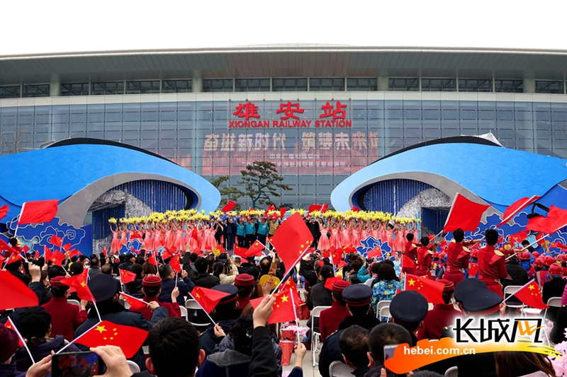 3月18日,在雄安高铁站站前广场,中央广播电视总台“心连心”艺术团走进雄安新区慰问演出主会场在这里成功举办,为雄安建设者和当地群众奉献了精彩的文化盛宴。值得一提的是,艺术团的艺术家们就是乘坐刚刚建成通车的京雄城际铁路的高铁列车来到雄安的。