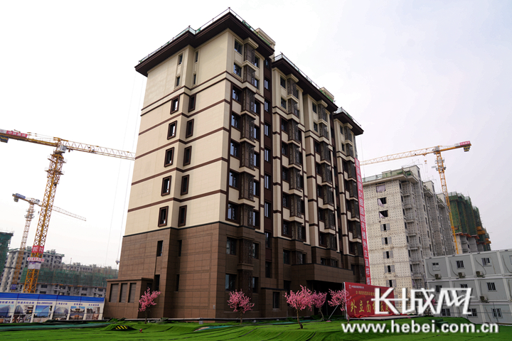 容东D1组团安置房首栋外立面展示。长城网记者霍少轩 摄