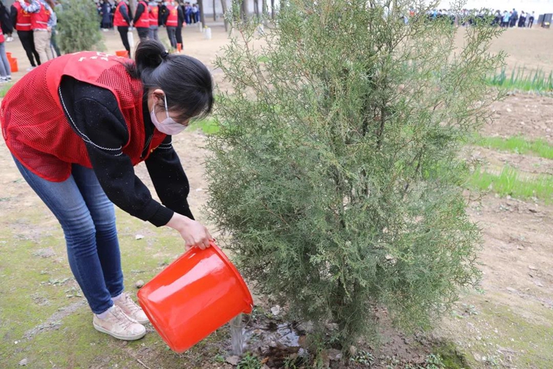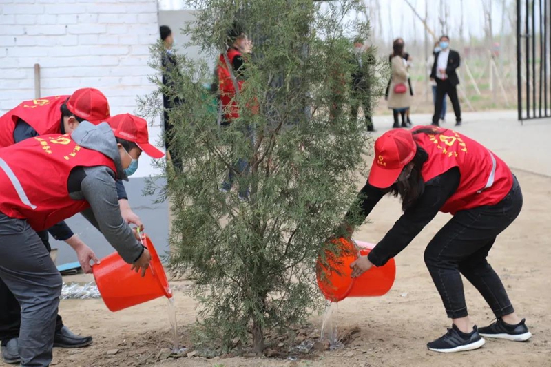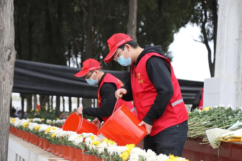 随后,党员志愿者们纷纷拎起水桶为园区的小树、鲜花浇水,以实际行动向英烈们致敬。