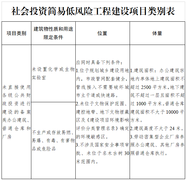 按照“政府统一服务、企业信用承诺、监管有效约束”的总体要求,对社会投资不涉及国家安全、公共安全、生态安全等领域的备案类项目,全面实施告知承诺制管理。