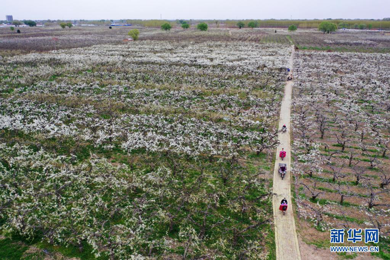 4月5日拍摄的雄安新区雄县雄州镇的梨园(无人机照片)。