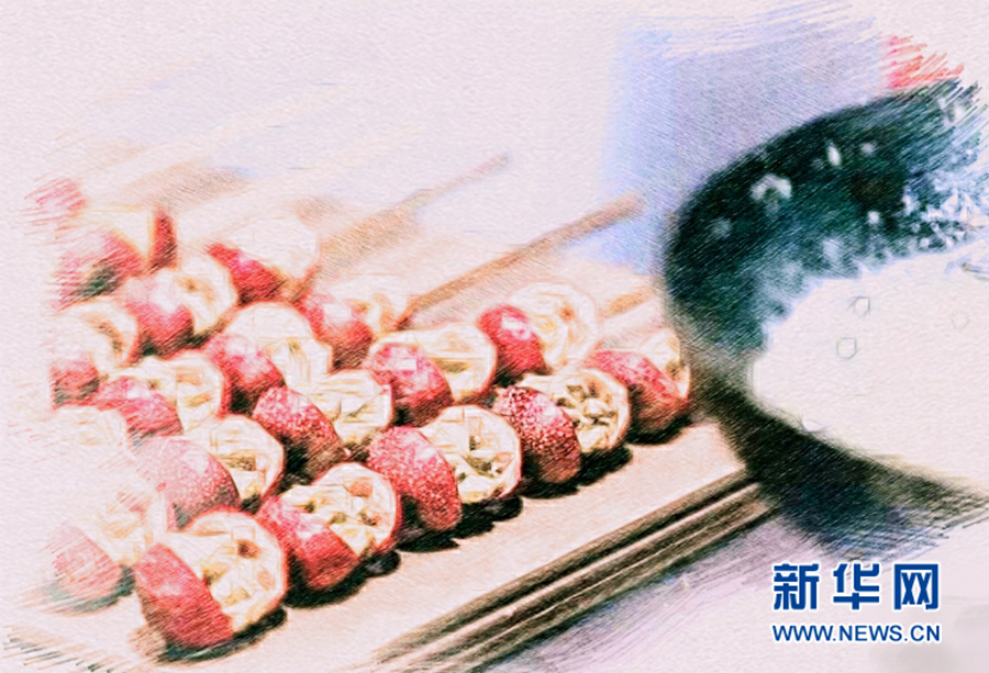 酸甜适口的冰糖葫芦不仅给人们带来了一个好胃口,还寓意着人们的日子红红火火、团团圆圆。