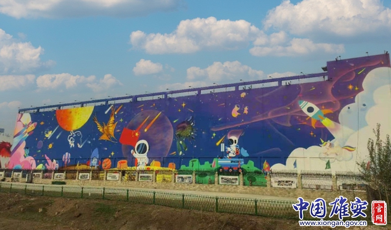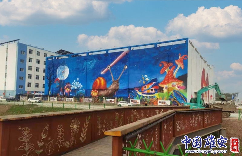 白洋淀不夜城项目外墙面进行艺术涂鸦。中国雄安官网发