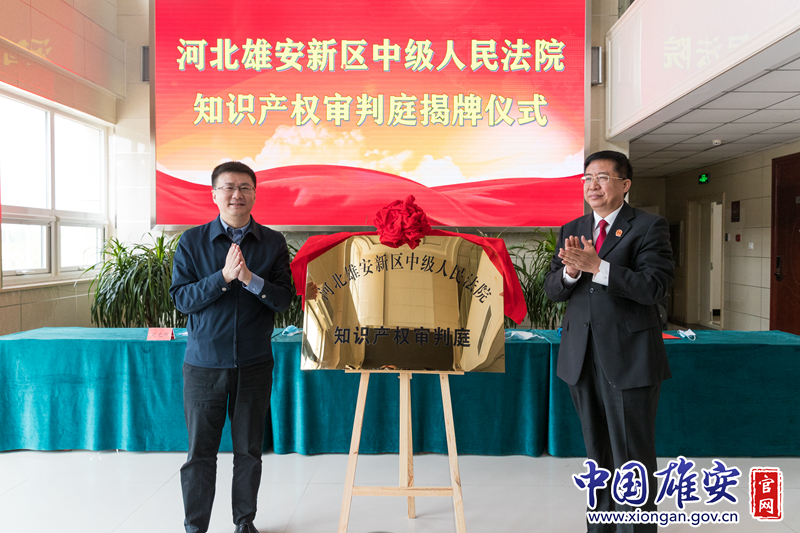 4月20日上午,河北雄安新区中级人民法院知识产权审判庭揭牌成立。省法院党组成员、副院长杨宝森,雄安新区党工委委员、管委会副主任陈峰共同为知识产权审判庭揭牌。揭牌现场,杨宝森代表省法院对河北雄安新区中级人民法院知识产权审判庭的成立表示热烈祝贺。他表示,河北雄安新区中级人民法院知识产权审判庭的成立是深化司法体制改革、完善中国特色知识产权审判体系的有力举措,将为雄安新区乃至我省推动实施创新驱动发展战略提供有力司法保障。