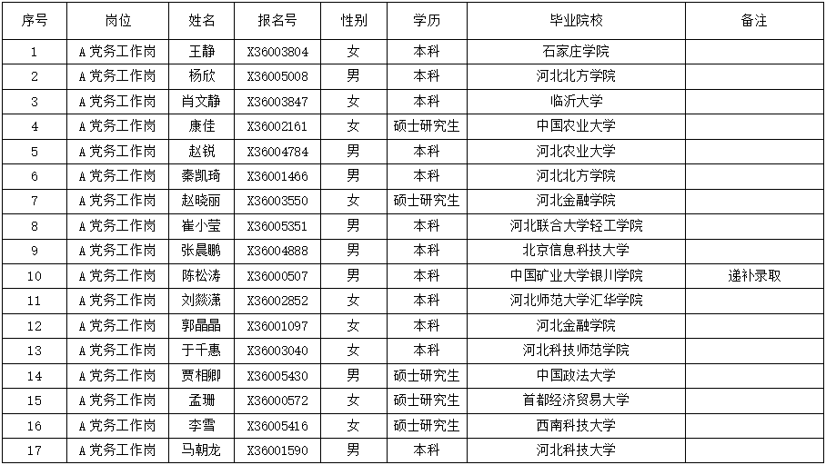 2021年河北雄安新区容东管理委员会公开招聘社区工作者拟聘用人选名单
