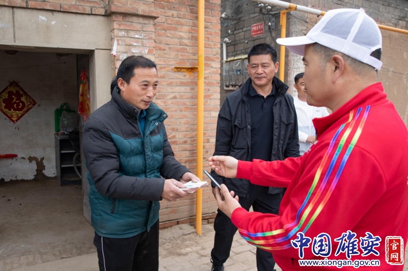 雄锋健走队队员将善款送到杨书田手中。中国雄安官网记者毛鹤然 摄