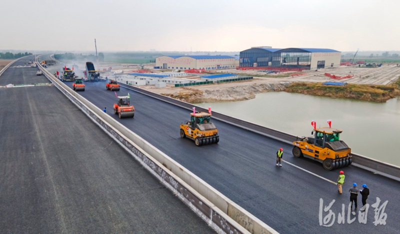 近日,北京大兴国际机场至山东德州高速公路京冀界至津石高速公路段(简称京德高速)一期工程“永久路面”摊铺工作正在紧张有序地进行。