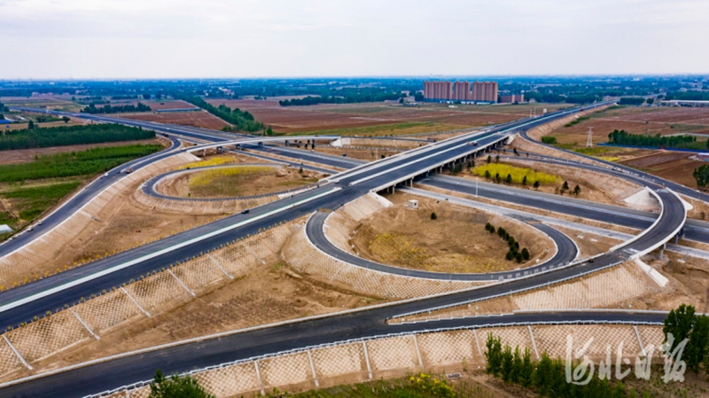 2021年4月21日拍摄的已完成路面摊铺的京德高速公路与荣乌高速公路新线交叉千人目互通立交桥。河北日报记者赵海江 摄