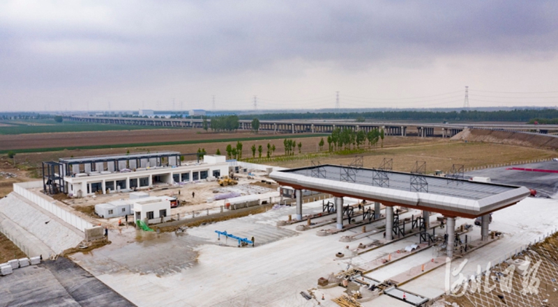 2021年4月22日拍摄的正在加紧建设的京德高速文安北收费站。河北日报记者赵海江 摄