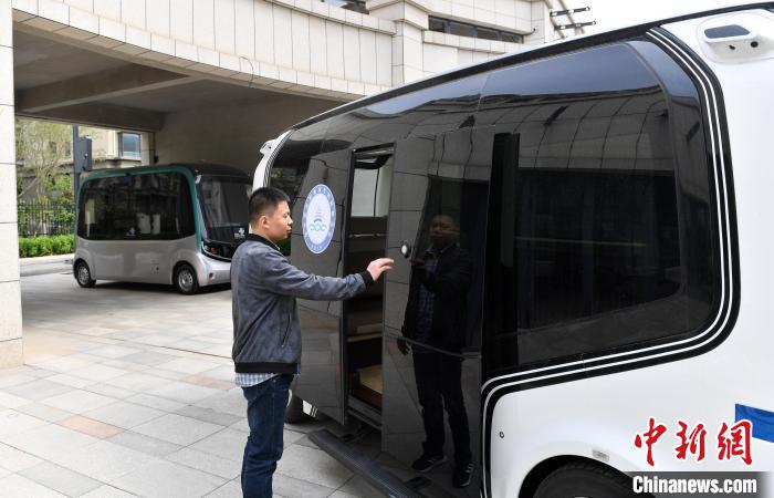雄安数字交通实验室负责人任大凯介绍目前正在测试的自动驾驶巴士。韩冰 摄