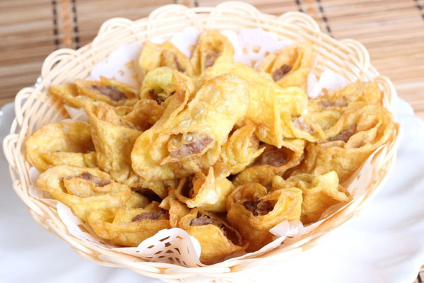 薄皮蛋卷,里面卷着肉馅,油锅里炸透,咬一口,外脆内香,就问你流口水没?