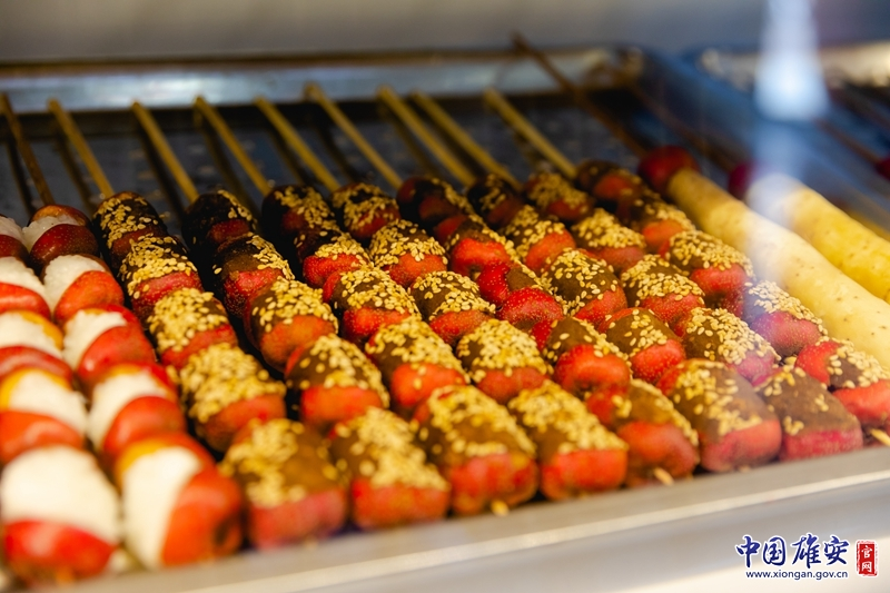 在雄安当地,糖葫芦有另外一个名字——糖墩儿,雄安新区的大树刘庄村被人们称为“糖葫芦村”,这里的糖墩儿在手艺、创新上都可谓更上一层楼,很多村民还会奔赴全国各地,或经营冰糖葫芦成品,或提供专业的制作技术,小小的糖墩儿真正串起了“幸福和团圆”。