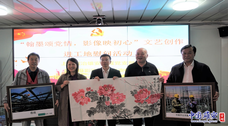 中国雄安官网5月1日电(李元闯 通讯员罗翊涵)为激发广大员工以饱满的热情投身到雄安新区建设中来,以优异成绩献礼中国共产党建党100周年。4月30日,上海宝冶集团北京分公司雄安区域党支部携手雄县摄影家协会党支部、雄县晴风阁书画艺术馆党支部于上海宝冶北京分公司承建的雄东片区A单元安置房项目部会议室组织开展了“翰墨颂党情,影像映初心”文艺创作进工地慰问活动,旨在用书法绘画篆刻等作品展现中国共产党百年奋斗的光辉历程和丰功伟绩,展现公司品牌形象、实力和火热的一线建设场景,以及公司广大职工坚定不移听党话、跟党走,奋斗新时代、建功新征程的时代风貌。