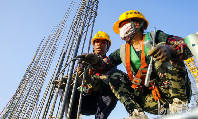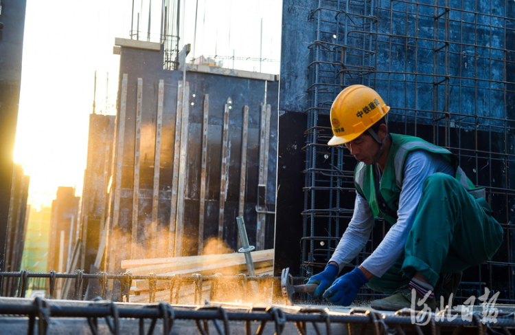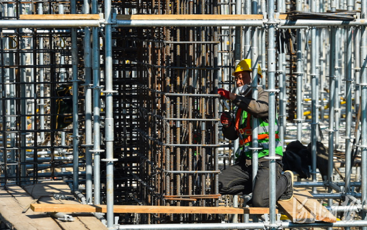 2021年5月1日,建设者在雄安新区悦容公园建设现场绑扎钢筋。五一假期,众多劳动者依旧坚守工作一线,为雄安新区建设做出自己的贡献。河北日报记者耿辉摄影报道