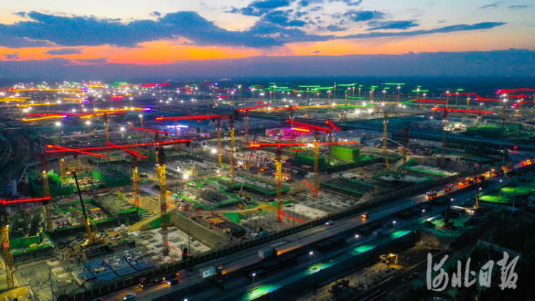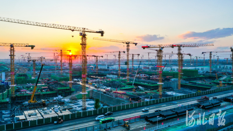 2021年5月1日,北京市援建雄安新区重点项目“三校一院”——北海幼儿园区内,建设者在紧张施工。