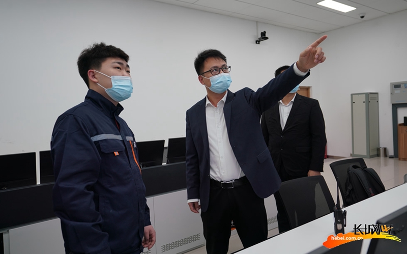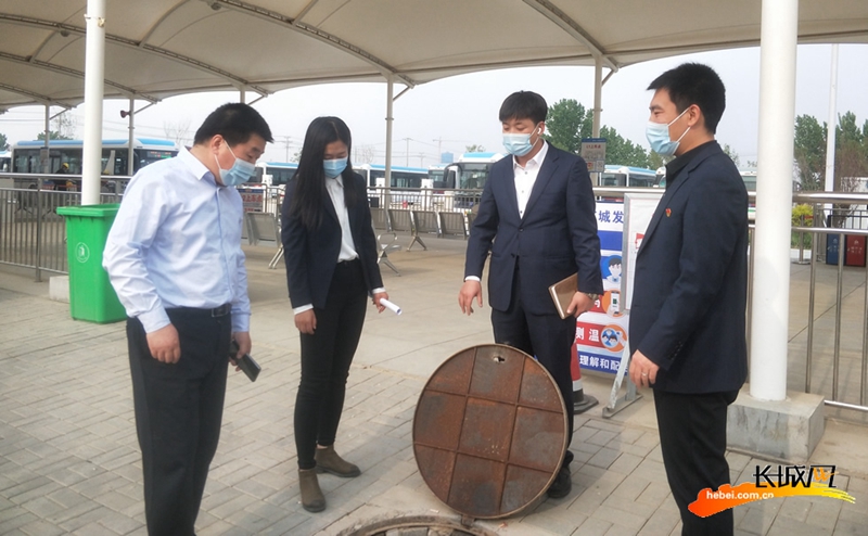 李丽全(左一)和同事一起在进行五一节前安全检查。长城网记者霍少轩 摄