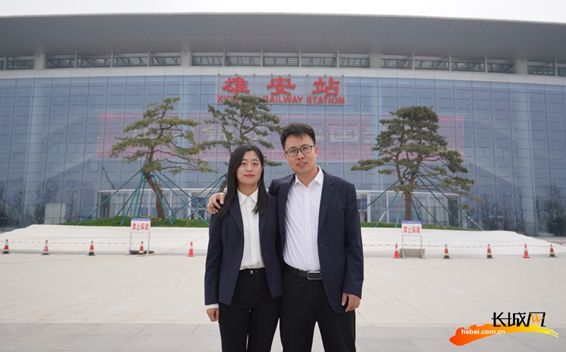 王雪超和李丽全夫妻与雄安站合影。长城网记者霍少轩 摄
