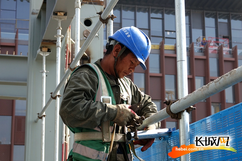建设者正在安装脚手架。长城网记者霍少轩 摄