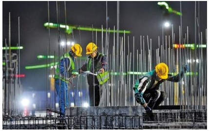 5月1日,在雄安新区容西片区安置房建设项目工地,劳动者正在抓紧建设。河北日报记者耿辉 摄