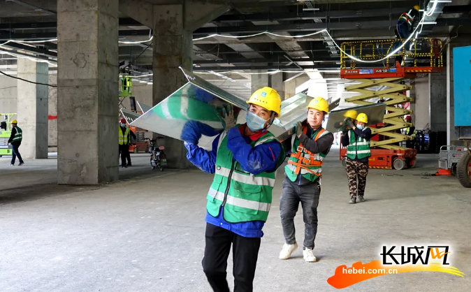 建设者们正在搬运机电安装扣板。长城网记者霍少轩 摄