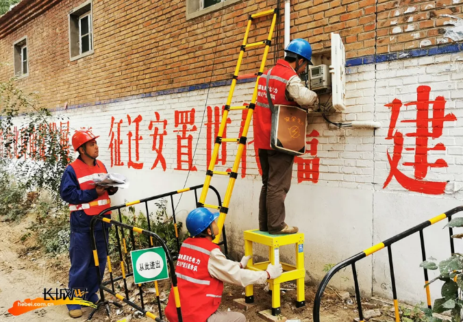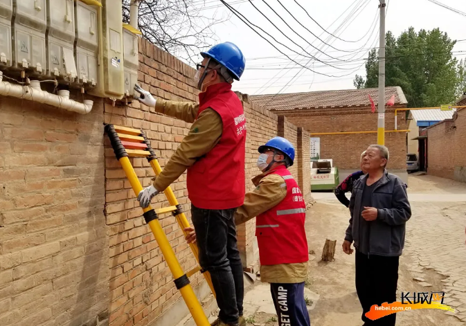在雄安新区征迁现场,共产党员服务队队员正在为村民拆除表计。冀洋 图