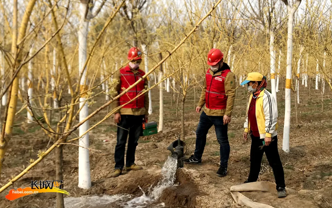 共产党员服务队巡视检修千年秀林灌溉用电设备。冀洋 图