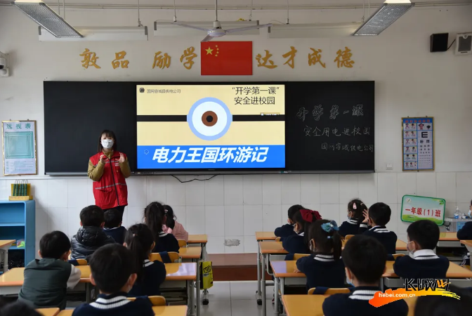 共产党员服务队队员为小学生们讲“开学第一课”。冀洋 图