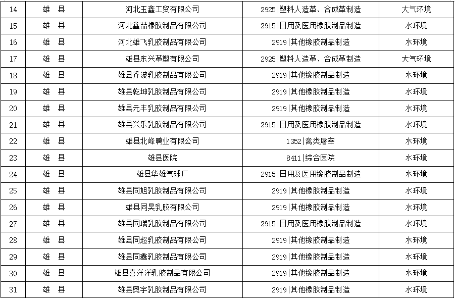 按照河北省生态环境厅办公室《关于做好2021年重点排污单位名录更新工作的通知》有关要求,我局组织开展了《2021年雄安新区重点排污单位名录》筛选制定工作。结合新区实际,经调整后,共确定2021年重点排污单位89家。按类别分:水环境重点排污单位62家,大气环境重点排污单位26家,土壤环境重点排污单位12家。