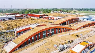 几座红褐色融入流水元素的曲线造型建筑物依次排开,给人以灵动之感。六百余名中建安装集团有限公司的施工人员紧张有序地进行装饰装修、设备安装调试以及道路施工。