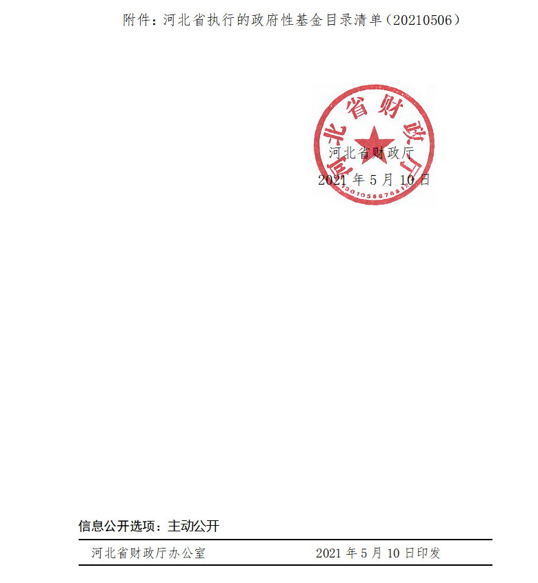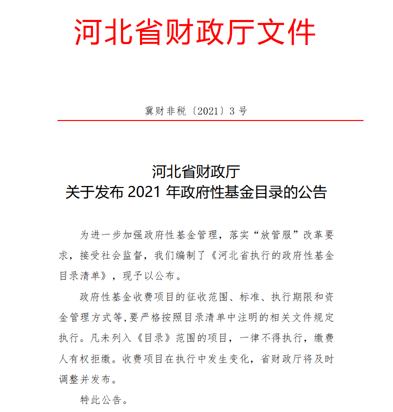 河北省财政厅关于发布2021年政府性基金目录的公告