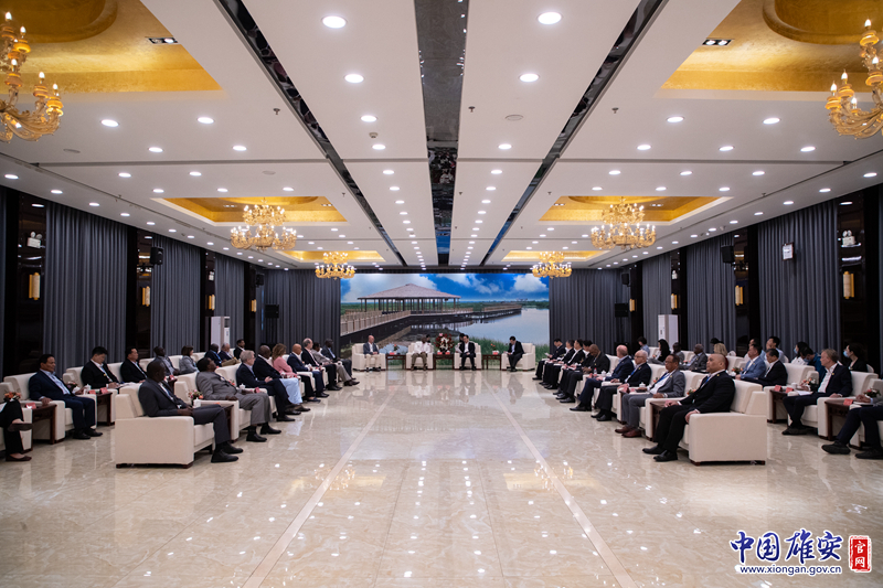 张国华代表河北省委、省政府和雄安新区党工委、管委会对驻华使节代表团到新区访问考察表示热烈欢迎,并转达了河北省委、省政府主要领导对到访外宾的问候。他说,设立河北雄安新区是以习近平同志为核心的党中央作出的一项重大历史性战略选择,是千年大计、国家大事。习近平总书记亲自谋划、亲自部署、亲自推动,倾注了大量心血。目前,雄安新区“1+4+26”规划体系和“1+N”政策体系等顶层设计基本完成,重点片区和重大项目建设进展顺利,京雄城际和雄安高铁站开通运营,生态环境治理取得明显成效,一幅森林环城、水城相融、城绿交织的美丽中国画卷正在徐徐铺展。下一步,新区将坚持开发建设与功能承接并举,以加快“形成新形象、建设新功能、发展新产业、聚集新人才、构建新机制”为主要抓手,全力加快重大工程和重点项目建设,全面打造“雄安服务”品牌和一流营商环境,持续加强生态环境治理,高标准高质量高效率建设雄安新区,尽快把宏伟蓝图变成生动现实。诚挚欢迎各国朋友共同参与未来之城建设发展,共享新区发展机遇。