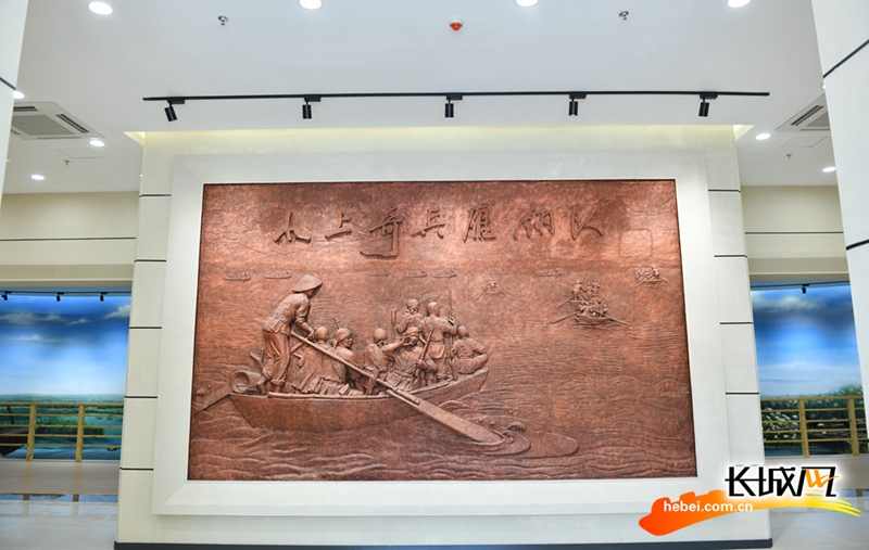 提升改造后的白洋淀雁翎队纪念馆壁画。长城网记者霍少轩 摄