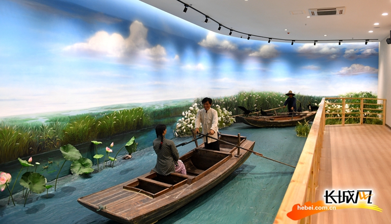 5月11日,雄安新区白洋淀文化苑景区内的雁翎队纪念馆提升改造工程完工,展品陆续摆入场馆各展位。