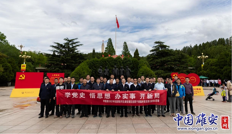 雄安新区党工委副书记、管委会副主任,挂职干部党支部书记万岷表示,当前,雄安新区已从规划建设为主进入承接北京非首都功能疏解与大规模开发建设同步推进的重要时期,挂职干部要牢记习近平总书记关于新区建设的殷殷嘱托,自觉从革命先烈的初心使命和拼搏奉献精神中汲取养分,传承红色基因,赓续精神血脉,始终坚持人民至上,努力提升新区群众的获得感、幸福感;勇于变革、勇于创新,保持永不停滞、永不僵化的精神状态,全力打造贯彻落实新发展理念的创新发展示范区;坚持实事求是的思想方法和艰苦奋斗的工作作风,扑下身子与当地干部群众一起干、一起苦,奋力开创雄安新区建设发展新局面,以优异成绩庆祝建党100周年。