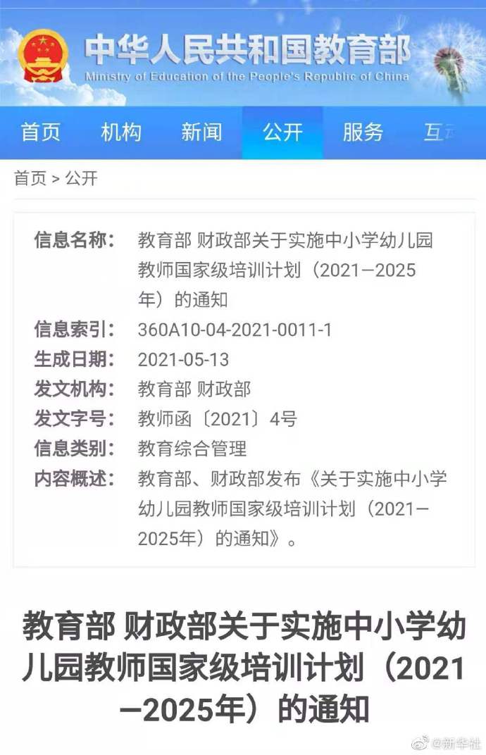 记者19日从教育部了解到,教育部、财政部近日印发《关于实施中小学幼儿园教师国家级培训计划(2021-2025年)的通知》。通知明确,“十四五”期间,重点支持中西部欠发达地区农村义务教育学校、幼儿园骨干教师、校园长和培训者深度培训。辐射带动省、市、县、校级教师培训,实现教师培训全覆盖。通知强调,突出教师核心素养培养,将思想政治和师德师风作为必修内容。加大体育、音乐、美术、劳动、科学等紧缺学科教师培训力度,将国家安全、法治教育、生态教育、国家通用语言文字、幼小衔接、少先队工作、预防校园欺凌等内容纳入教师校园长培训。(记者胡浩)