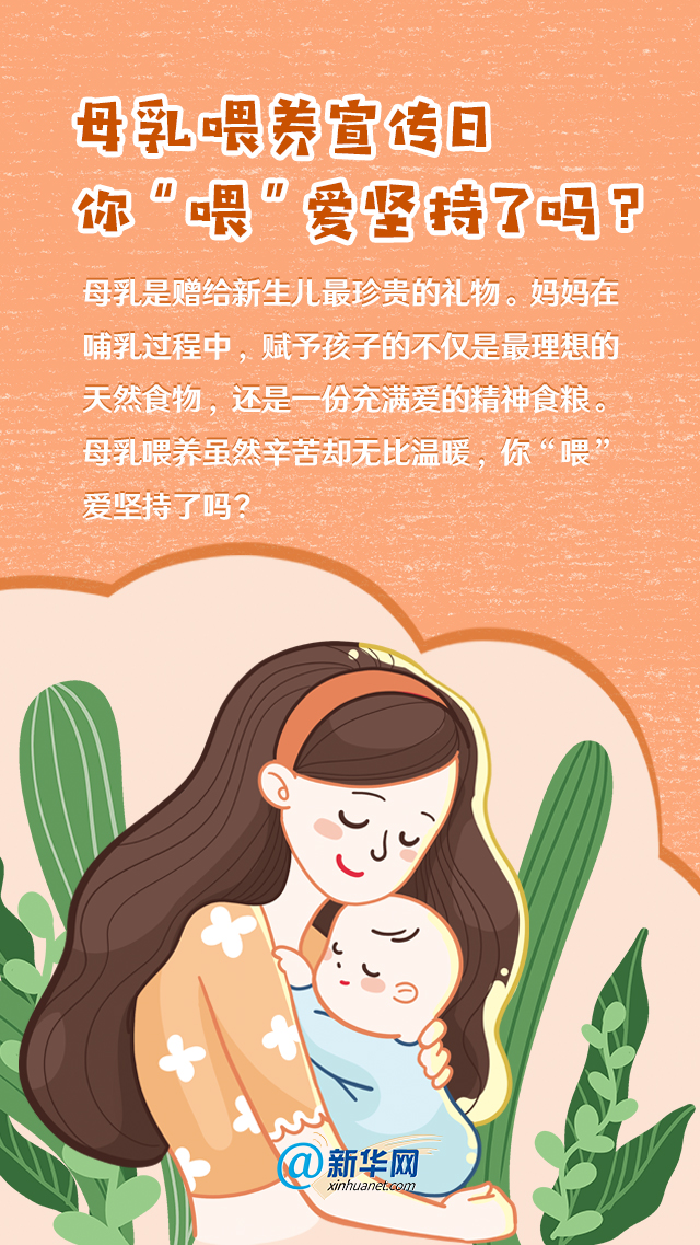 母乳是赠给新生儿最珍贵的礼物。妈妈在哺乳过程中,赋予孩子的不仅是最理想的天然食物,还是一份充满爱的精神食粮。母乳喂养虽然辛苦却无比温暖,你“喂”爱坚持了吗?