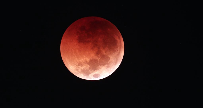 天津市天文爱好者晁春兴2018年1月31日拍摄的月全食照片。(晁春兴本人供图)