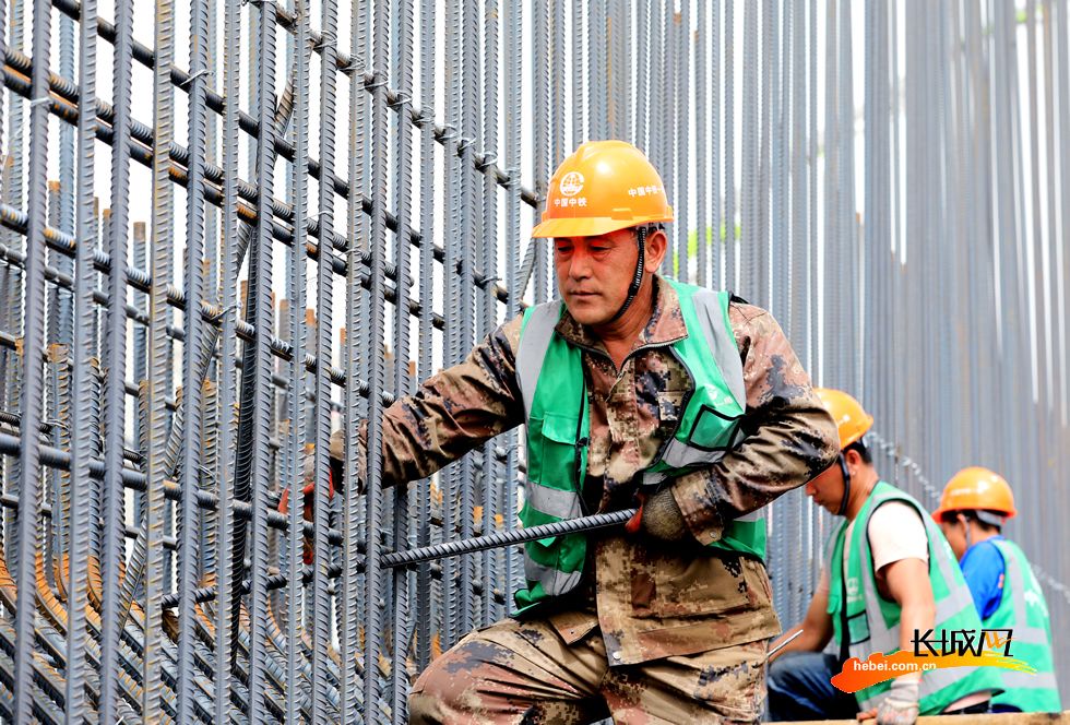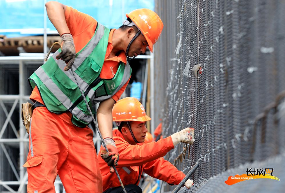 在雄安新区启动区C组次干路支线管廊项目,建设者们正在绑扎边墙钢筋。王利 摄