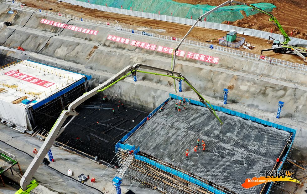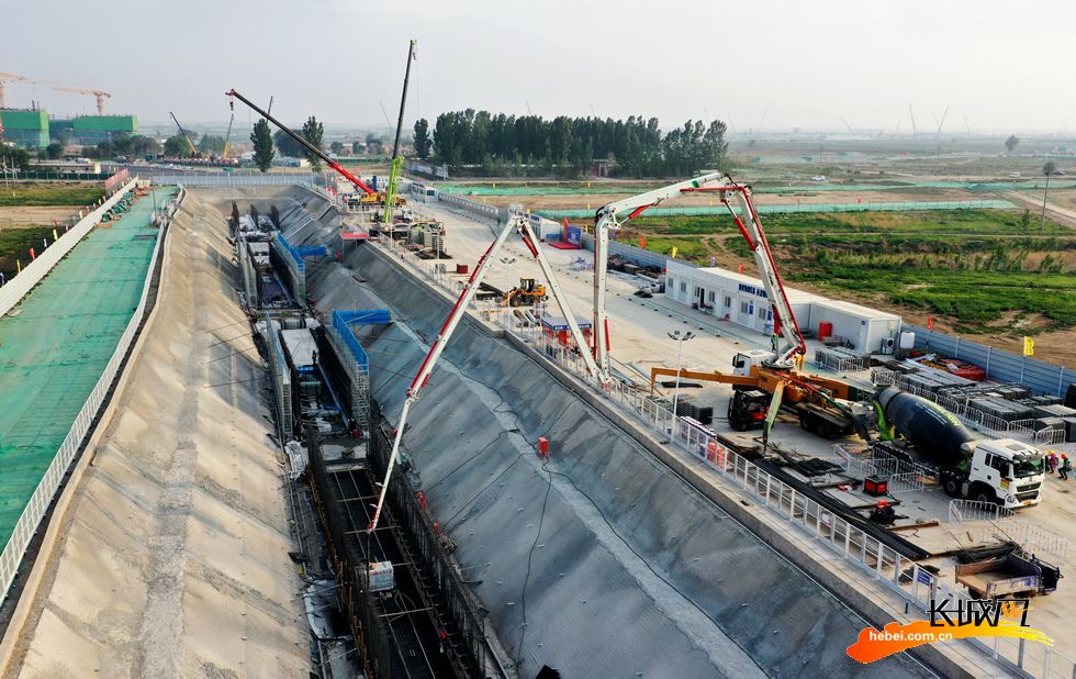 雄安新区启动区C组管廊项目管廊工区正在浇筑管廊结构底板混凝土。王利 摄
