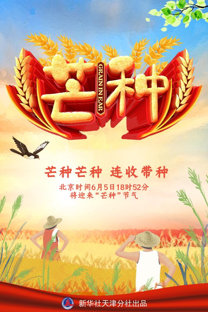 新华社天津6月3日电(记者周润健)“芒种芒种,连收带种”。《中国天文年历》显示,北京时间6月5日18时52分将迎来“芒种”节气,这标志着一年仲夏的开始。此时节,北方麦黄,江南秧绿。