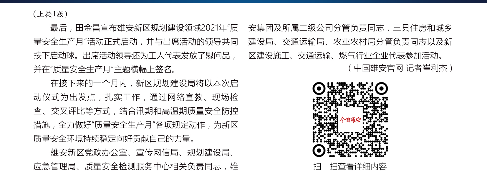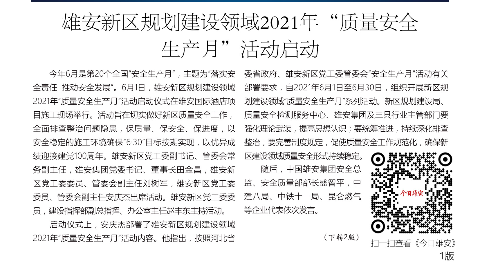 【雄安之声】雄安新区规划建设领域2021年“质量安全生产月”活动启动