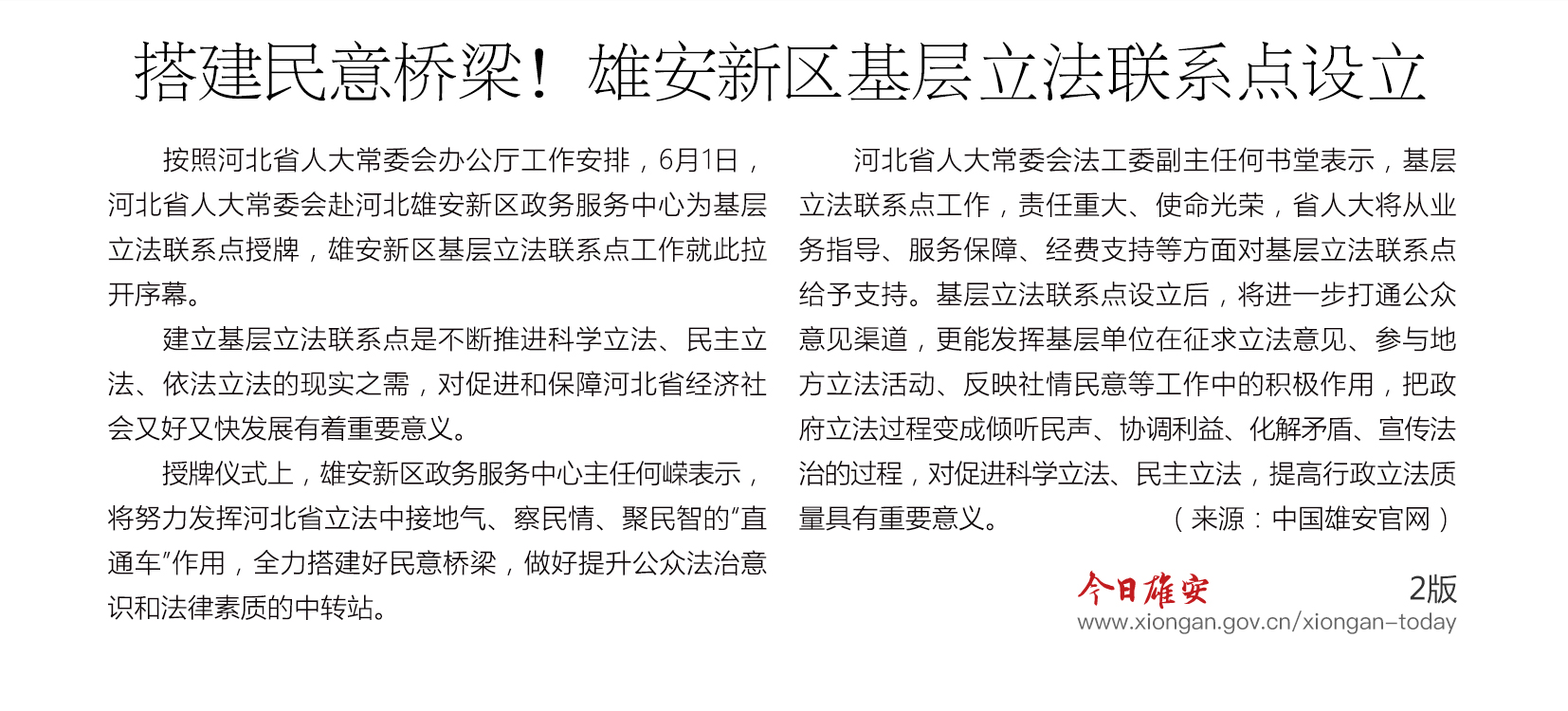 【雄安之声】雄安新区基层立法联系点设立