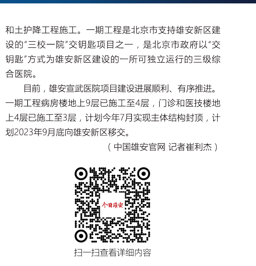 【雄安之声】雄安宣武医院建设最新进展来了